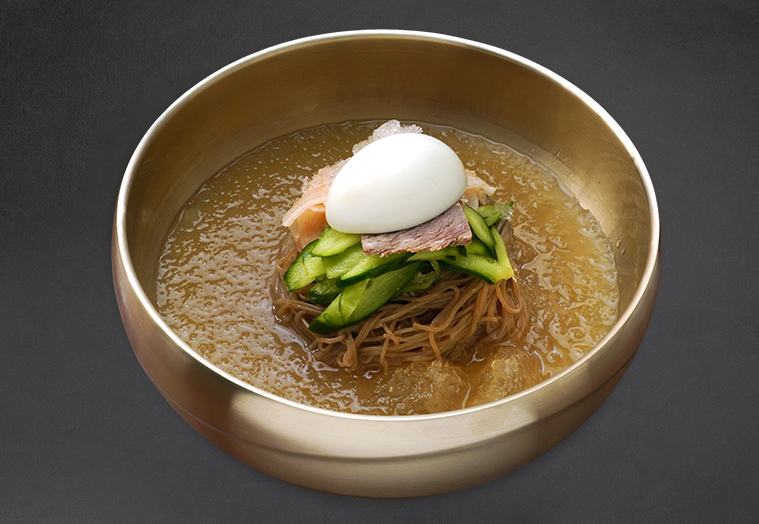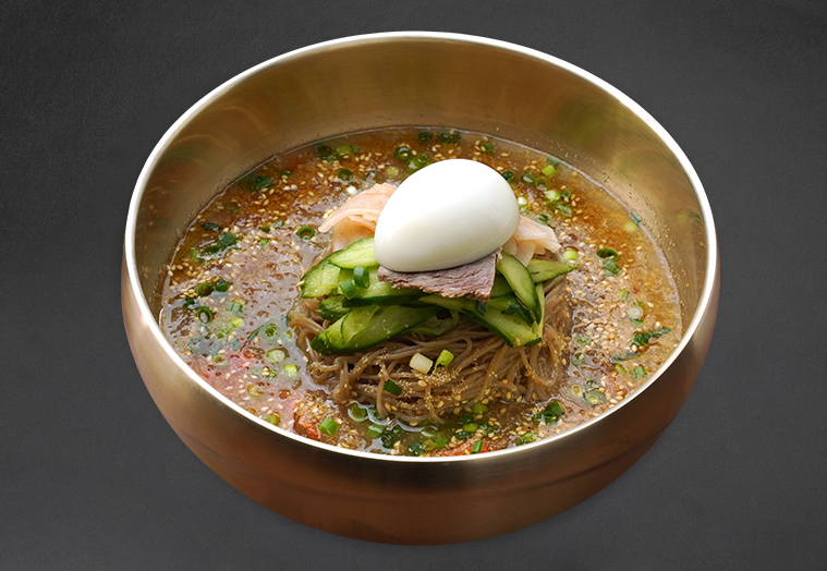 甘酸っぱく清涼感のある冷たいスープの冷麺